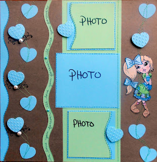 did a scrapbook page and I am sooooo loving this. She used smoochie and did a combination of faux and real stitching. I love that all the hearts are linked through the stitching and the colors...fabulous! This is DARLING!!!